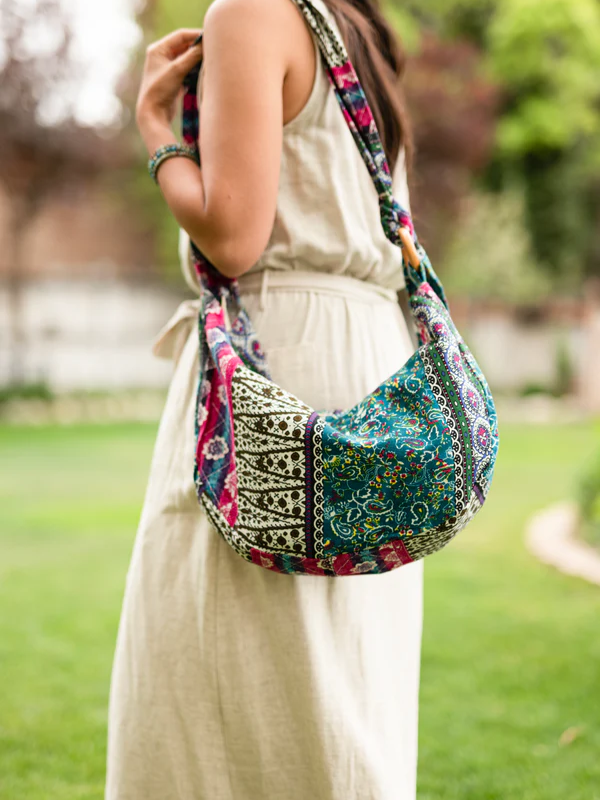Womens Cotton Canvas Crossbody Bag Hippie Messenger Sling Purse