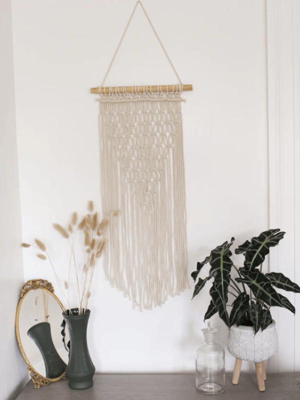 Geometric Cotton Macrame Wall Hanging with Long Tassels